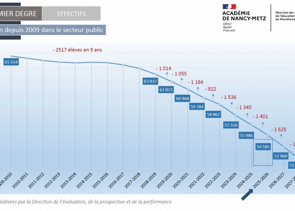 Entre les rentrées 2009 et 2028, 15 000 enfants manqueront à l'appel de la rentrée scolaire en Meurthe et Moselle... Ces chiffres illustrent une chute démographique qui s'accélère depuis une décennie. Pour 2026, la diminution attendue sur le département est de 1 625 élèves.
